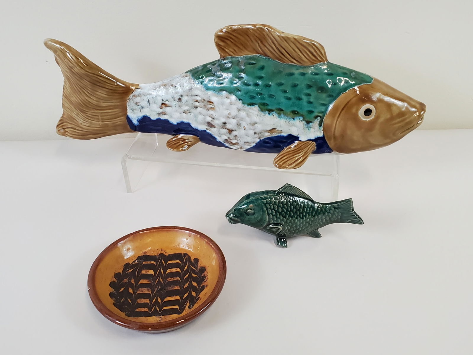 Asian Polychrome Glaze Pottery & Fish