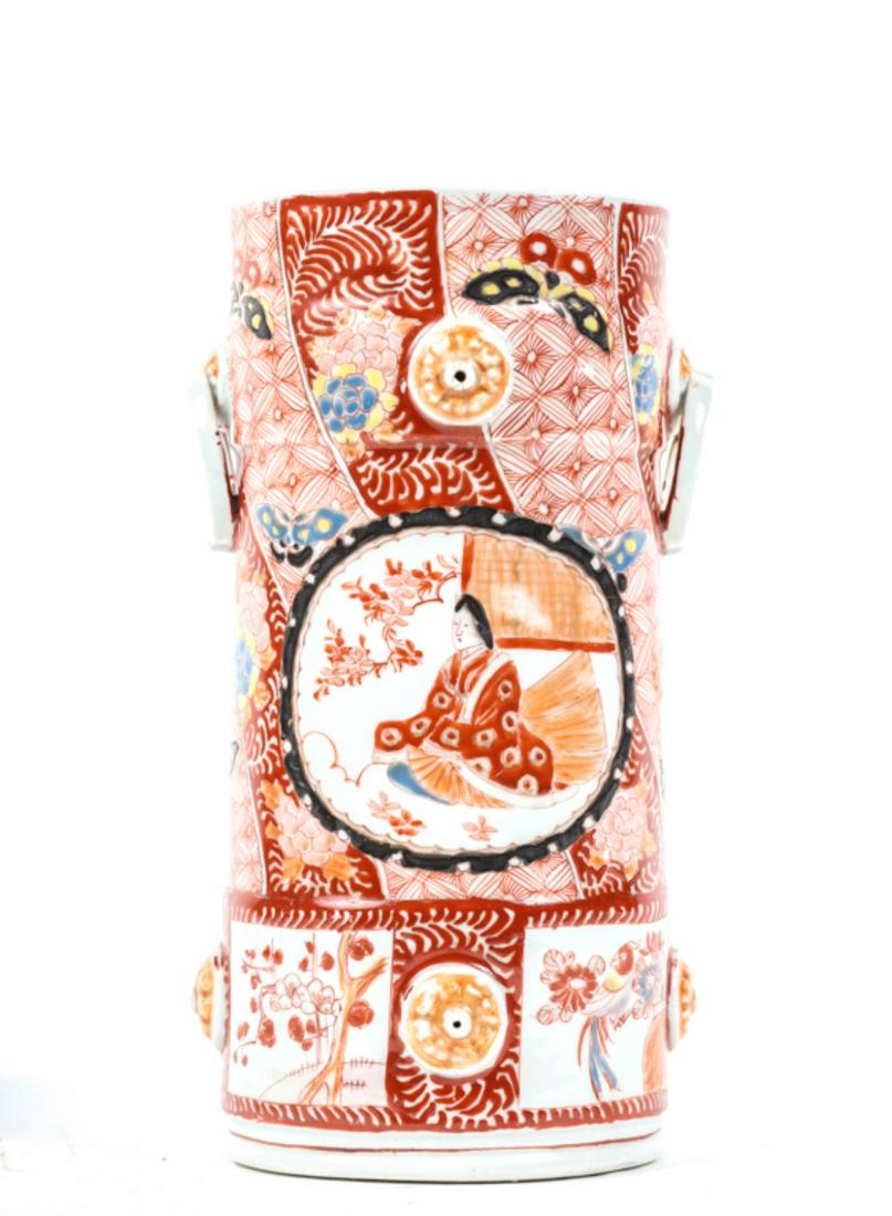 ASIAN PORCELAIN (2) HANDLED CYLANDER VASE