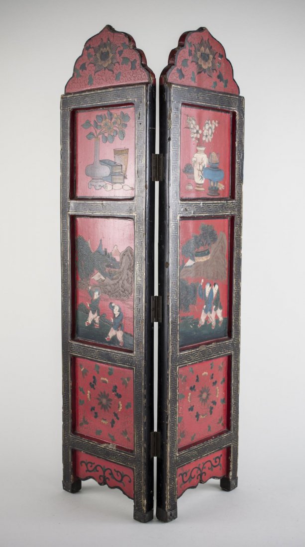 Asian Red and Black Lacquer Screen
