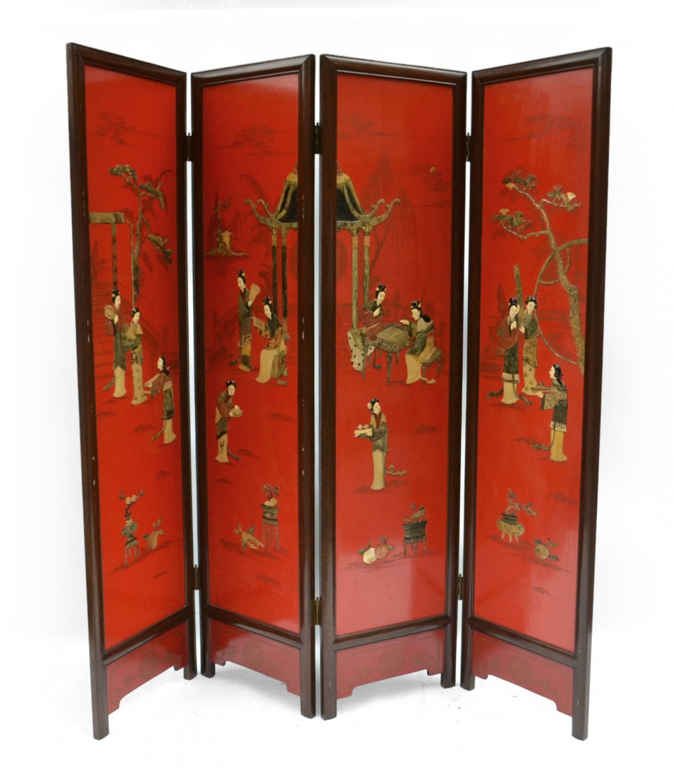 CHINESE FOUR PANEL LACQUERED SCREEN, 19TH C.Feb 24, 2026(6) CHINESE RED LACQUER PAINTED MENSHEN DOOR GOD GUARDIAN PANELS, 110"HFeb 22, 2026Red Eight-Panel Asian Room ScreenFeb 25, 2026CHINESE BLACK LACQUER 4 PANEL SCREENMar 07, 2026Black Six-Panel Chinese ScreenFeb 25, 2026Vintage Chinese Four Panel Folding Screen with Hardstone Carvings 1950sFeb 28, 2026Asian Style 4 Panel Folding Screen Room Divider.16 hrs LeftRosewood Folding Screen Chinese Females DesignFeb 22, 2026CHINESE LACQUERED COROMANDEL PANELS WITH BONE INLAYFeb 21, 2026A Large Chinese Huanghuali/ rosewood Folding Screen with Mother-of-Pearl Inlay, 4 Panels3 days LeftFolding Screen Red Plum Tree Motif Golden FramesFeb 22, 2026Antique Chinese 4 Panel Hardstone Screen3 days LeftRosewood Folding Screen Four Seasons Flowers MotifFeb 22, 202696" Tall Vintage Oriental Lacquer ScreenMar 04, 2026ASIAN WOOD AND STONE FOUR PANEL TABLE SCREENFeb 21, 2026Four Panel Black Lacquer Room Divider / ScreenMar 07, 2026