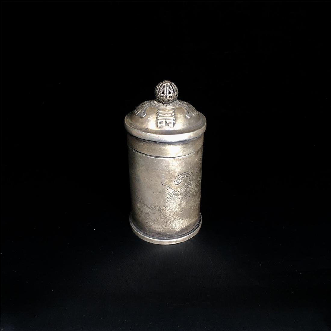 Asian Sterling Silver Cylindrical Tank