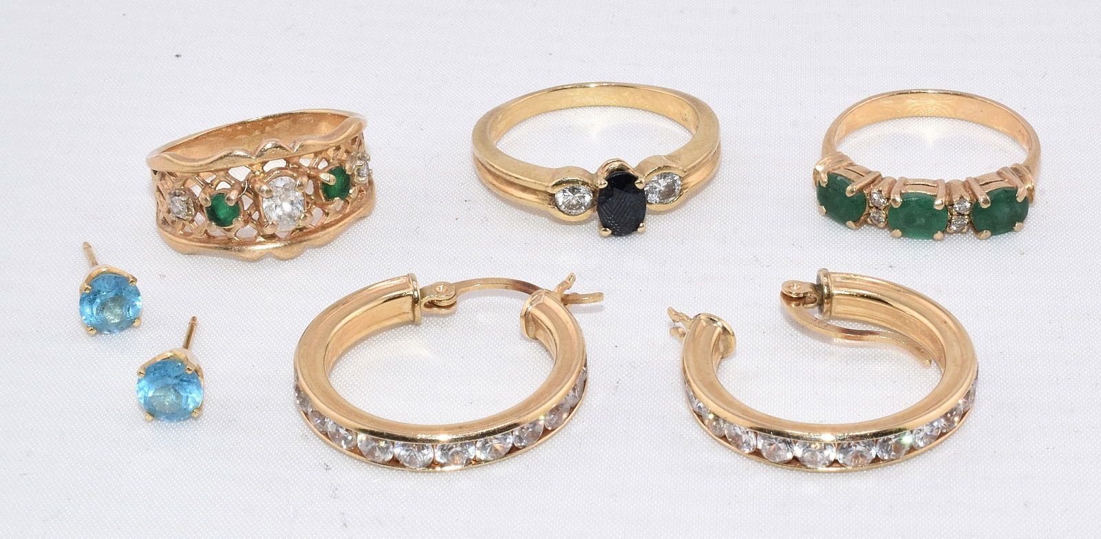 Lot of emerald jewelry. 1) 14K gold emerald with halo of tiny diamonds. Ring size 7. 2) SterlingTremont Auctions4.6(313)$250(2 bids)2 days Left