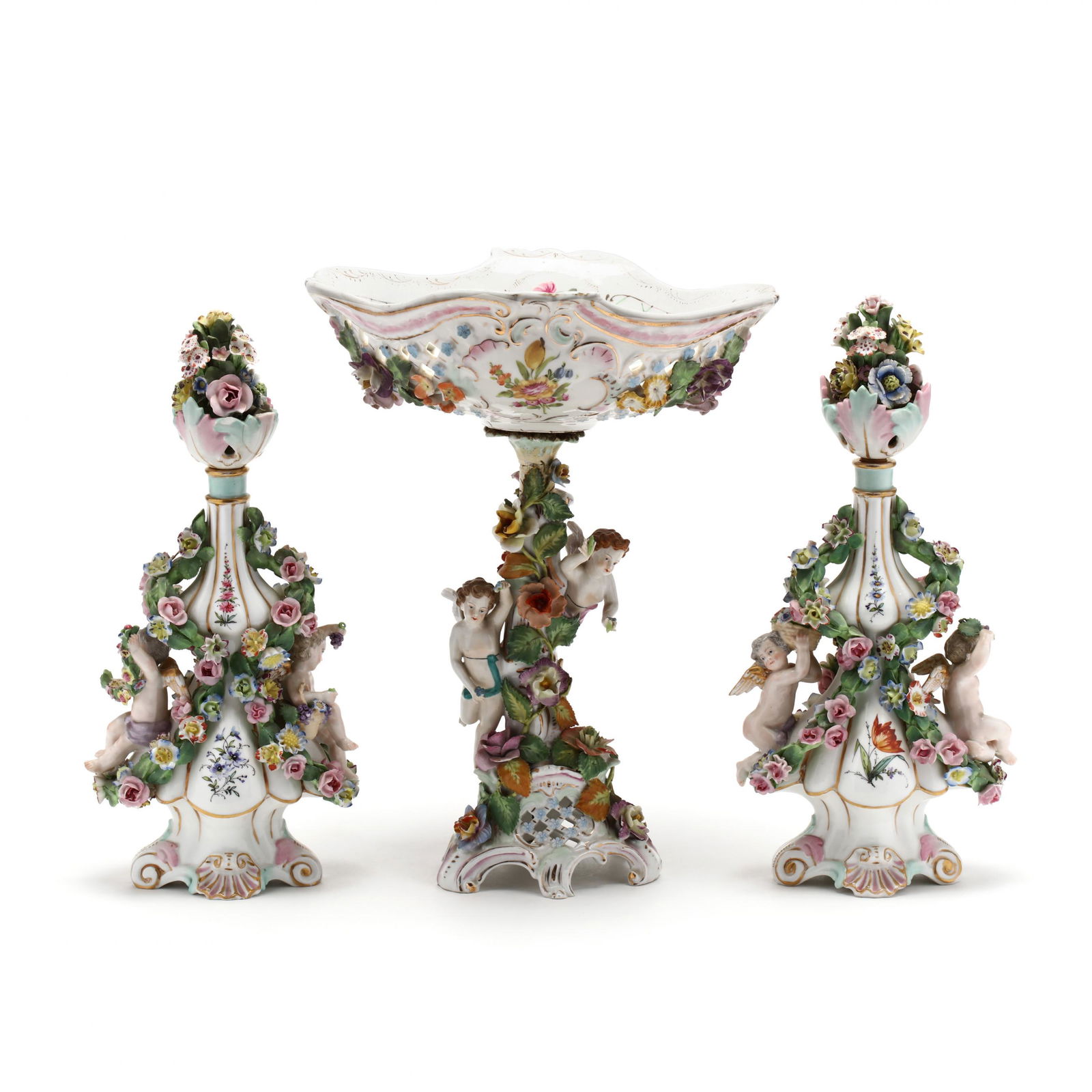 A lot of three variously decorated cut crystal and opaline glass objects4 days LeftA composed lot of three Italian majolic style polychrome decorated and glazed ceramic objects4 days LeftA composed lot of two Italian Napoli porcelain vase and figural group.4 days LeftA Lot of 2 Porcelain FigurinesMar 03, 2026Von Schierholz Porcelain Centerpiece & Potpourri Jars (3)2 days LeftDresden German Porcelain Candelabra and CandlesticksMar 28, 2026An imposing German porcelain flower encrusted figural centerpiece, possibly Meissen, 19th century5 days Left4 Pcs--Carl Thieme Dresden & KPM CompoteMar 07, 2026A pair of large German 20th century Schierholz Plaue Saxony porcelain footed and covered urn vases4 days Left19th Century French Export Armorial Porcelain Vase/Urn Fitted Lamp with Footed Center BowlMar 28, 2026Chinese Blanc de Chine Porcelain Bowl & 2 FiguresMar 17, 2026Vintage Garniture Porcelain Sevres Design Mantel Set Capodimonte- 3 PiecesGuarniture with mantel clock and two candelabra France, 1871171 Lots AwayPair of vases and centerpiece set, European school, 19th century5 days LeftSevres Style Ormolu Mounted Porcelain and Cobalt Blue Ground Three Piece Garniture6 days LeftA ROCOCO STYLE PORCELAIN FIGURAL GROUP OF REVELERS, POSSIBLY GERMAN, 19TH/20TH CENTURY,1 day Left