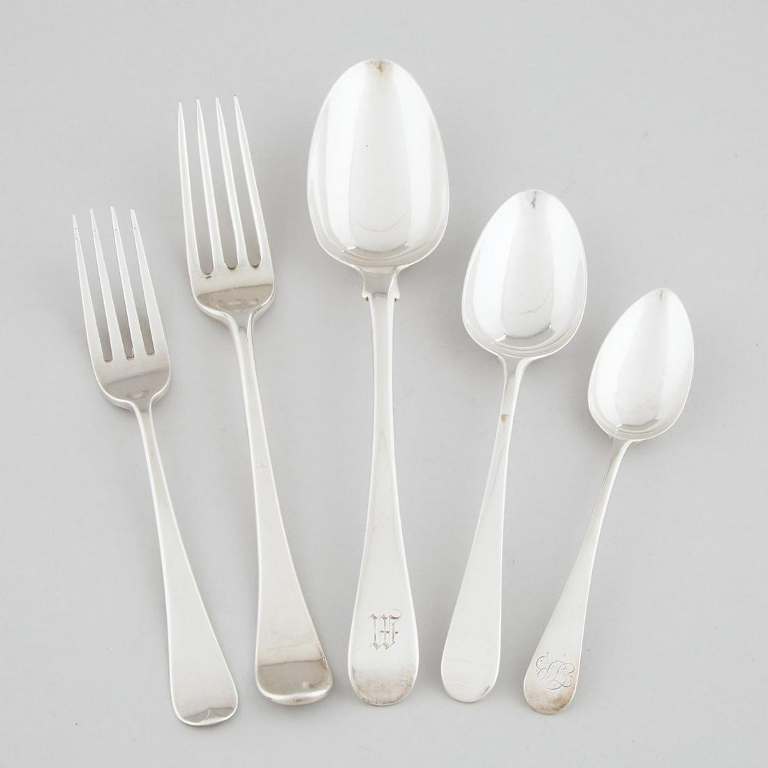 Assembled George III Silver Old English Pattern Flatware Se