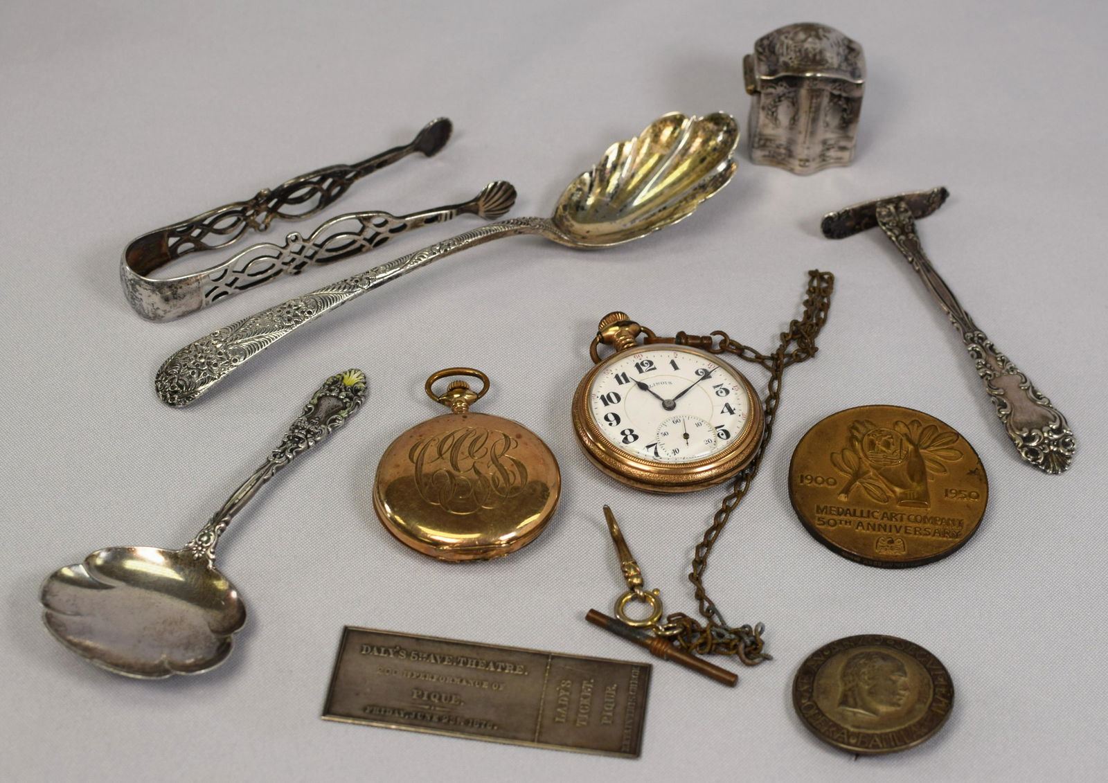 Group lot of Vintage 925 sterling silver miscellaneous jewelryApr 22, 2026Estate lot vintage sterling silver jewelry, including Native American bracelets, rings, sterlingApr 10, 2026Lot of silver cutlery113 Lots AwayLUXURIOUS LADIES JEWELRY LOT OF 124 days LeftLot of Brass and Brass Mounted Articles, 134 days LeftGOLD & SILVER TONED LADIES JEWELRY LOT OF 144 days LeftLoaded Wrist Watch, Pocket Knives, Pocket Watch and More Lot6 days LeftLOT OF ANTIQUE FURNITURE HARDWAREApr 17, 2026A Collection of Vintage Miscellaneous Commemorative Medals, Arcade Tokens, and Advertising Pieces2 days LeftQuartz Pocket & Wrist Watches, Tokens & moreAssorted 14 Karat Yellow Gold Jewelry Collection including Brooches, Pendants, and Chains13 hrs LeftWrist Watches, Stop Watches & Pocket WatchesGold Filled Antique Pocket Watches and Chains (4)4 days LeftElgin Gold Filled Watch & 2 Watch ChainsApr 14, 2026Seiko, Waltham, and Other Wrist Watches4 days LeftGold Filled Jewelry Watch Rings Necklaces Pins Etc..4 days Left