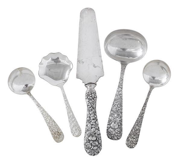 9PC LOT OF STERLING SILVER, 22 T.O.W.Mar 07, 20263PC LOT OF SPECIALTY STERLING SILVER, 12.75 T.O.W.Mar 07, 2026FRANCIS HIGGINS STERLING SILVER UTENSILS LOT OF 63 days LeftFRANCIS HIGGINS STERLING SILVER UTENSILS LOT OF 63 days LeftLot of sterling silver spoon sets. To include: 1) Towle set of 12 teaspoons. 6.2 ozt. 2) Durgin setMar 01, 2026Eight Vintage Eternally Yours Silverplate Silverware1 day LeftS. Kirk & Son Repousse pattern sterling silver 13pc. flatware and serving pieces, 14.630ozt. 7Feb 21, 2026TOWLE EL GRANDEE STERLING FLATWARE SET.Feb 25, 2026Alvin Bridal Rose pattern sterling silver flatware set of 7 table spoons, 15.273ozt., along with oneFeb 21, 2026Group of Sterling and Coin UtensilsFeb 26, 2026Five Pieces of Repousse Sterling Silver Flatware9 hrs LeftGroup of English and American Silver Flatware9 hrs Left51 Pieces Sterling Repousse Style FlatwareFeb 25, 2026Eight pieces of Sterling Silver Serving PiecesFeb 21, 2026Gorham Chantilly pattern sterling silver flatware set of 12 cream soup spoons, 13.987ozt. 6 1/4"LongFeb 21, 2026Four Sterling Silver Flatware Servers9 hrs Left