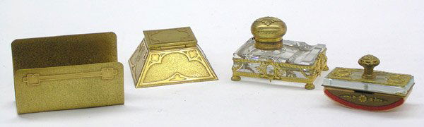 Lot Brass Desk ItemsMar 04, 2026A lot of two antique Bohemian cut glass objects with mounted cabochon stones and brass mounting4 days LeftBaccarat Perfume Bottle Tea Caddy LotMar 28, 2026(3) ORMOLU-MOUNTED PEKING GLASS VANITY BOXES & ENAMELED CASKET3 days LeftSilver Buckle & Cigarette Case6 days LeftTwo Sterling Desk Articles15 hrs Left4 Piece Moser Cobalt Crystal Desk SetMar 03, 2026(2) Perfume Bottles, French Art Deco2 days Left5 French Neoclassical Style Table Articles6 days LeftVintage Gold Filigree Ormolu Vanity SetMar 06, 2026Baccarat, Etc. Glass Vessels, 2Mar 12, 2026Collection Antique English Desk Top Valuables BoxesFeb 28, 20265 French Neoclassical Style Table Articles6 days LeftSterling silver accessories. 1) English sterling silver tray and inkwell. 9in wide. Tray: 6.7 ozt.Mar 01, 2026Set of 3 Vintage Boho Cut Glass Inkwells Decorative Desk AccessoriesFeb 27, 2026Montblanc Resin & Crystal Fountain Pen Inkwell Desk BaseFeb 28, 2026