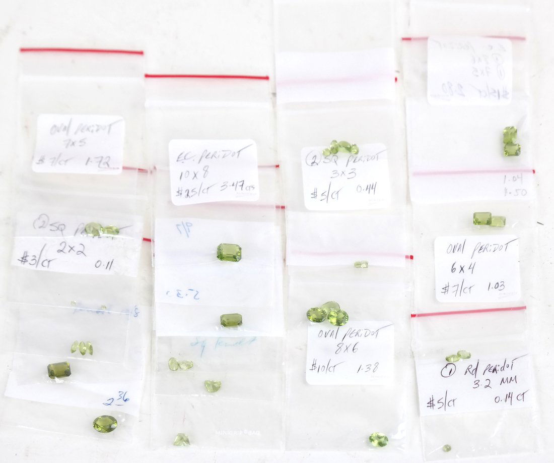 SoldLoose Stones - 4 Assorted PeridotsLoose Stones - 4 Assorted Peridots. Ranging in size from .80 - 2 carats in cushion, oval and emerald cuts.See Sold Price