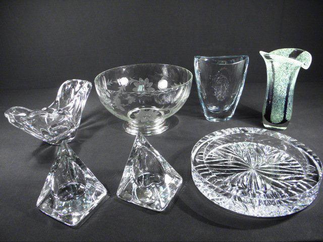ASSORTED ART GLASS AND CRYSTAL: 7 PCS