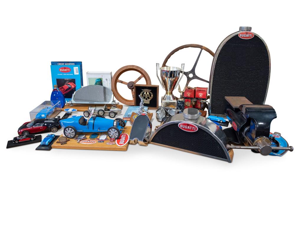 Assorted Bugatti Collectibles with Table