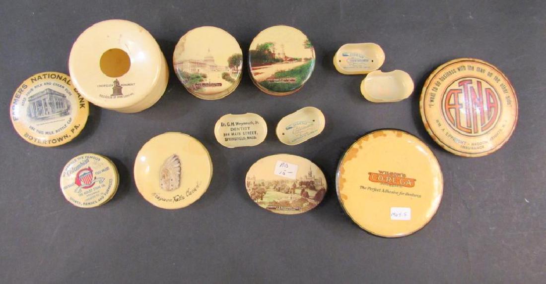 Misc. LotFeb 21, 2026Lot Antique & Vintage Percussion Cap TinsMar 07, 2026LOT ASSORTED COLLECT. BUTTONS INCL.FRENCH ENAMEL, ETC.Feb 21, 2026Lot of Assorted Vintage and Antique ButtonsLot of Top Drawer Finds4 days LeftLot of Seven Hand Painted Wood & Paper Mache BoxesFeb 16, 2026Lot of Collector Plates (5)Feb 21, 2026Sterling Silver Enamel Compacts Cigarette Case 10p3 days Left(12) COLLECTION OF TRINKET / PILL BOXES, VARIED MAKERS, MATERIALS & DESIGNFeb 20, 2026Assorted Tea Saucers 11 China Saucers2 days LeftAssorted Jewelry and Collectibles Mixed Lot Charms Pins Lockets Earrings Stick Pins and Keychain1 day LeftBundle Of BroochesJul 19, 2025Group Chinese brush washers, boxes, etc.Feb 20, 2026COLLECTION OF 13: VARIOUS CREAMS, OINTMENTS, & PILL TINSFeb 19, 2026COLLECTION OF SMALL ADVERTISING ITEMSFeb 19, 2026COLLECTION OF VARIOUS ADVERTISING PINBACK BUTTONSFeb 19, 2026