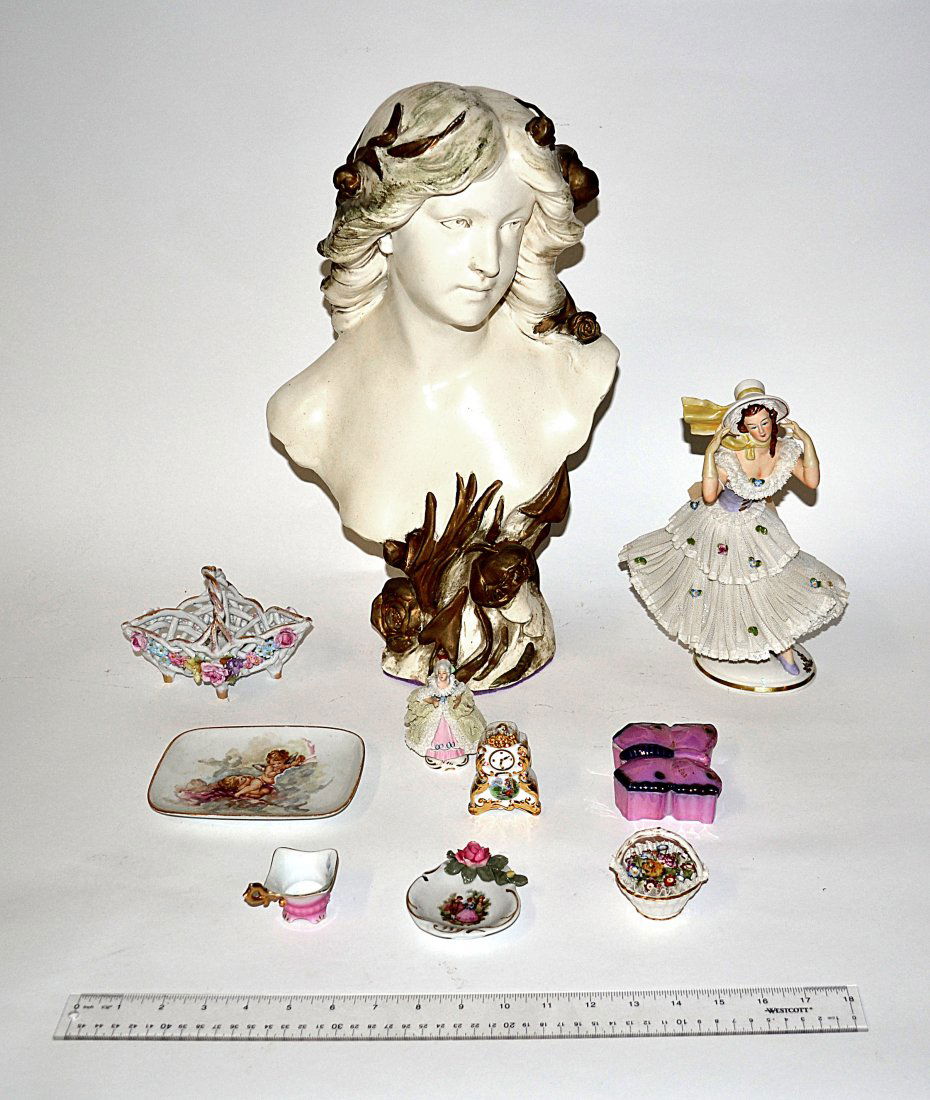 Lot: Limoges, Crown Staffordshire, Stone Eggs, etc1 day LeftLot of 7 Staffordshire Porcelain Small Painted Historical FigurinesFeb 21, 2026A composed lot of 11 variously marked porcelain figurinesFeb 24, 2026Lot: Limoges Cups w/ Saucers, Italian Figurines.1 day LeftLot of 3 AS-IS Pieces of Porcelain6 days LeftA lot of three Saxony style decorated porcelain figural groupsFeb 24, 2026Estate lot of porcelains and ceramics, from Hudson Valley estate, washbowl & pitcher, Hummel, pair13 hrs LeftA composed lot of seven variously marked and decorated German saxony style porcelain figurinesFeb 24, 2026A lot of six German Volkstedt and Napoli decorated porcelain figurinesFeb 24, 2026Goebel Porcelain Figural Lot Inc. 10 Various Early Hummel and More Figurines Some SignedMar 02, 2026Lot of Porcelain incl. Tea Pots7 hrs LeftThree Box Lots of Mostly Porcelain Figural GroupsFeb 21, 2026A collection of 12 old Brussels and Paris style decorated porcelain vases and figurinesFeb 24, 2026A Royal Dux Porcelain Bust of Maiden in Lace BonnetMar 07, 2026Collection of Four Royal Doulton Bone China Figurines4 days LeftSet of 2 19th Century German Porcelain Bust Figurines6 hrs Left