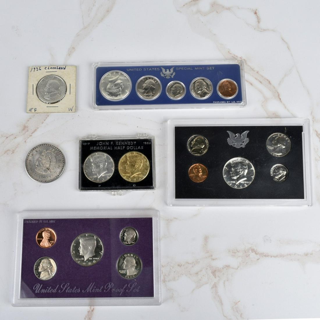 SoldAssorted coin collection, primarily proof and other U.S(lot of 6 containers) Assorted coin collection, primarily proof and other U.S. coins, in sets and individual coins, many pre-1965, including a silver Columbus Commemorative Half Dollar with two stampsSee Sold Price
