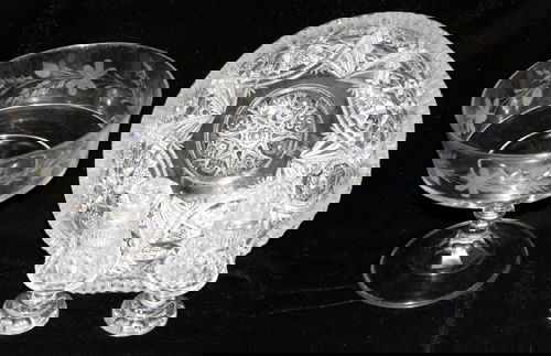 Lot of 17 Glass & Crystal, Waterford, Fostoria, Hawkes, HeiseyFeb 21, 2026Lot of Clear Glass and Crystal5 days Left(3) COLORLESS CUT CRYSTAL VASES, 1 LAUSITZERFeb 21, 2026A Collection of 4 Cristal DArques Durand Antique Amethyst Pressed Glass Plates and BowlsFeb 15, 2026Pair Tazza Compotes, ABCG, Hobstar, Vesica, Nailhead Diamond, Crosscutting, Feather And Fan MotifMar 07, 2026(22) PARCEL-GILT CUT CRYSTAL DRINKWARE, COUPES, FLUTES & TUMBLERSFeb 21, 2026Vintage (ca. 1960s) 3-Piece Pitcher/Vase Bowl/Relish Dish - Indiana Glass, Anchor HockingFeb 21, 2026Pair of Cut Lead Crystal, 3-Footed BowlsFeb 21, 2026Press Cut Clear Glass Round BowlFeb 25, 20265 Cut Crystal & Glass Articles467 Lots AwayGroup of Pressed and Cut Glass Articles, 3465 Lots AwayCollection of Seven Cut Glass Crystal TablewaresFeb 28, 20269 Piece Cut Crystal Assortment20 hrs LeftThree Pattern Glass Items, Lions Head DesignFeb 21, 2026Cut Crystal Two-Piece Footed Centerpiece Bowl20 hrs LeftSeven Assorted Glass Table Objects, Jimmy Carter ProvenanceFeb 25, 2026