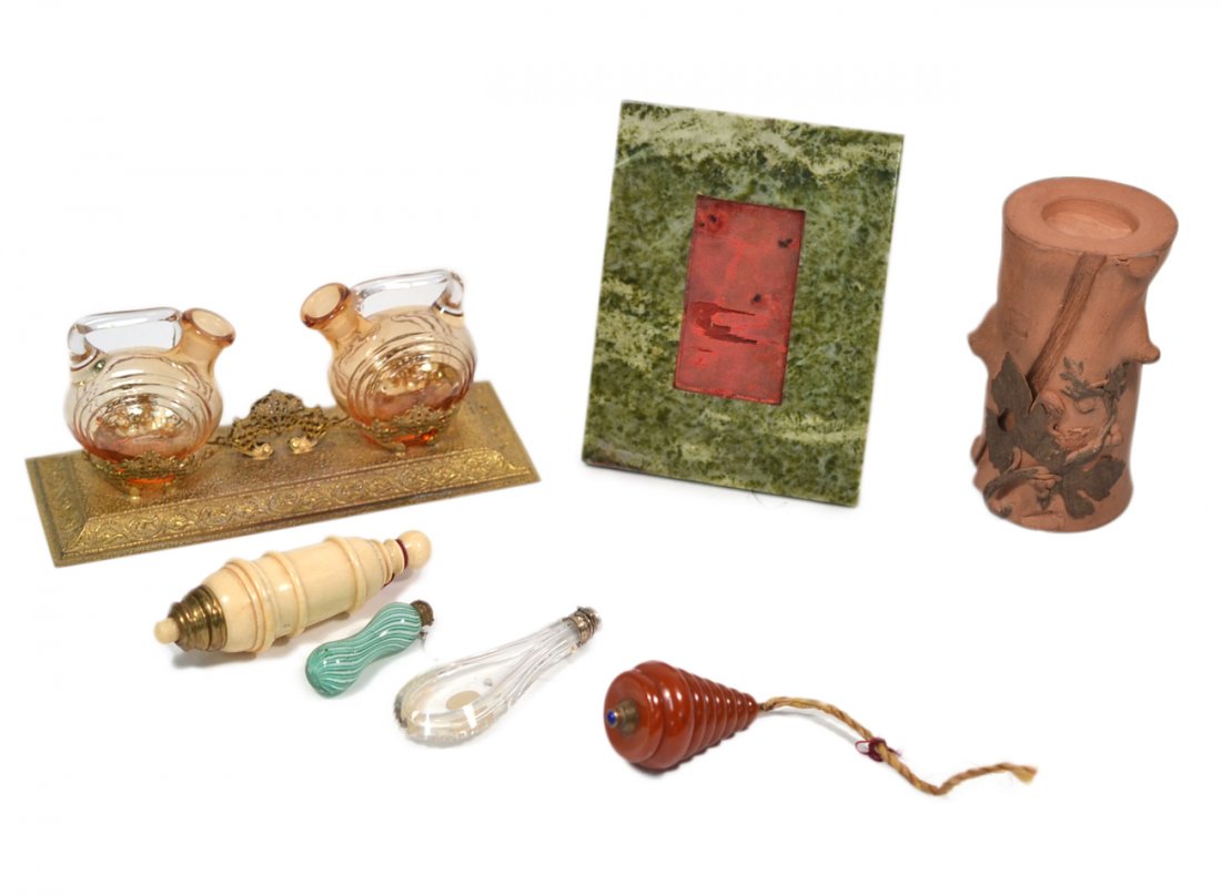 Art Deco Vanity Dresser Glass Perfume Bottle LOTFeb 11, 2026VICTORIAN DECORATED OPAL KEROSENE LAMPS, LOT OF TWO11 hrs LeftEstate Lot of 5 Antique Chinese & Bronze: Box, Bottle, Tray, Vase & Leather WalletMar 15, 2026Multi Colored & Other Glass Vases 4pc LOTFeb 05, 2026DeVilbiss Paradis Atomizer Perfume Bottles 7pc LOTFeb 11, 2026Pan Am Scripto Figural Mouse Cigarette Lighter LOTFeb 11, 2026Jean Patou Caron Guerlain Glass Scent Bottles LOTFeb 11, 2026(11) misc. POTTERY pcs. From Hudson Valley estate, including GOUDA 12.5" high vase, FULPER vase,Feb 06, 2026Art Deco Amethyst Red Green Pink Perfume BottlesFeb 05, 2026Four Vinage Ceramic Brass Glass Pod VasesJul 24, 2025A group of seven art glass table articles2 days Left2 VENTETIAN STYLE ART GLASS BLOWN VASES & ART GLASS BLOWN DISHFeb 19, 2026SEVEN-PIECE ECLECTIC GROUP, INCL. SHOT/POWDER FLASK.12 hrs LeftCollection Of Perfume BottlesFeb 13, 2026A GROUP OF FOUR SCENT FLASKS VARIOUS MAKERS, LATE 19TH/EARLY 20TH CENTURYFeb 19, 2026Fulper Weller Peters and Reed Pottery Teapot Vase Candlesticks Flower FrogMar 01, 2026