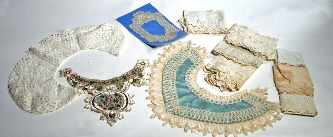ASSORTED DOLL COLLARS AND ANTIQUE LACES.
