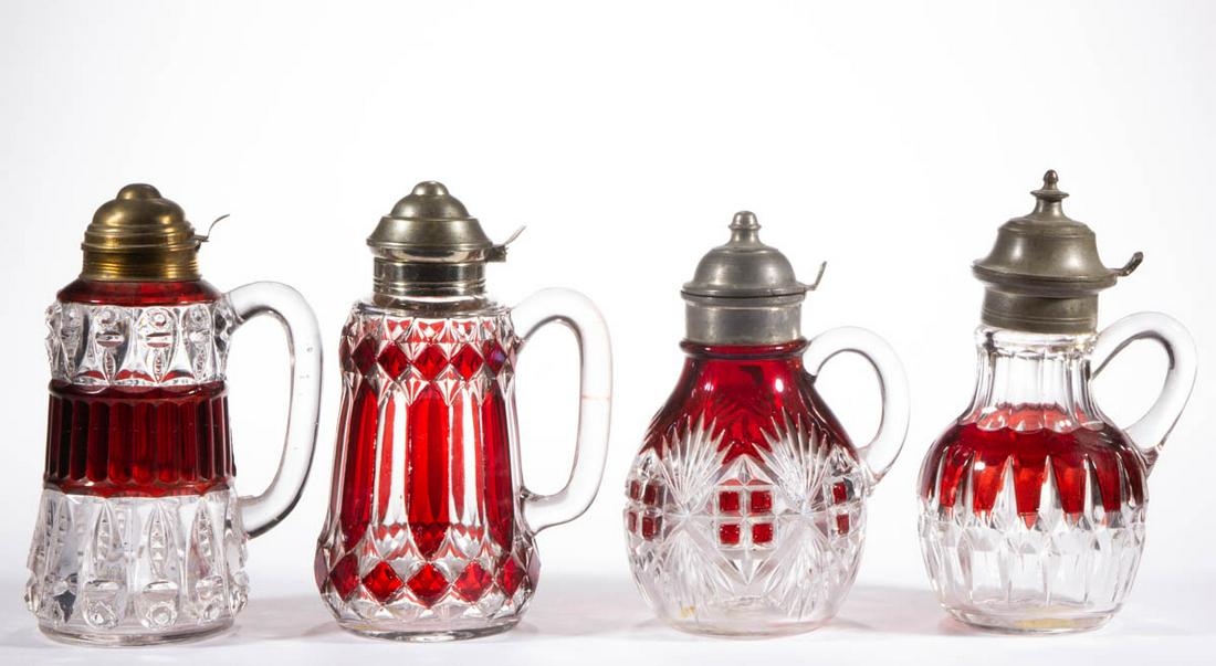 ASSORTED EAPG - RUBY-STAINED SYRUP PITCHERS, LOT OF