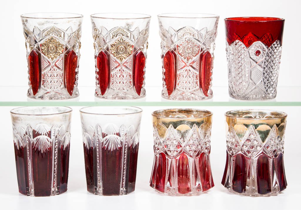 ASSORTED EAPG - RUBY-STAINED TUMBLERS, LOT OF EIGHT