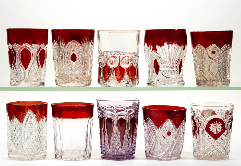 ASSORTED EAPG - RUBY-STAINED TUMBLERS, LOT OF TEN