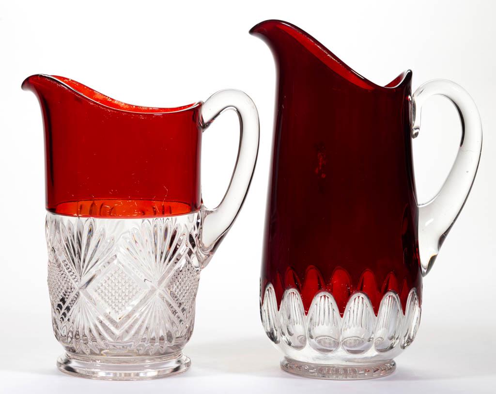 ASSORTED EAPG - RUBY-STAINED WATER PITCHERS, LOT OF TWO