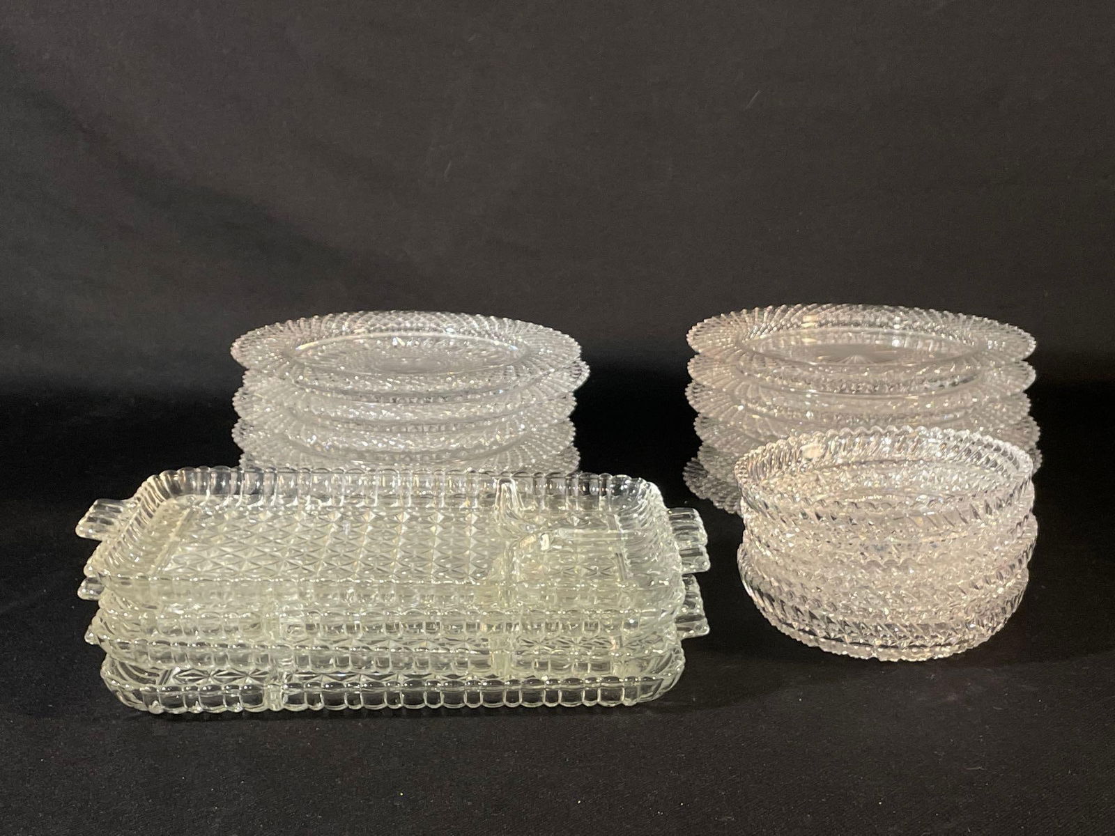 Lot Of Antique - Vintage Glassware - Salt Cellars (Lot 13")Mar 08, 2026Lot of 4 Cut Glass Serving Bowls6 days LeftLot of 9 Green Depression Glassware6 days LeftLot of 6 Assorted Clear Glass ItemsMar 19, 2026Lot 3 Glass Trinket Dish & Coasters4 days LeftLot Glass Casserole Dishes & Mixing Bowls4 days LeftLot of Cut Crystal & Glass Servers, Lamp, Pitcher.13 hrs LeftASSORTED GLASS COUNTRY STORE AND OTHER ARTICLES, LOT OF THREE5 days LeftLot of 6 Assorted Clear Glass ItemsJul 10, 2025A Trio of Glass Platters by Mikasa and Emanuel Ungaro5 days LeftSet of (5) Assorted Clear PlatesMar 23, 20266 Assorted Crystal Glass Sippers Port Sherry Glassses AJul 17, 2025Glass Dessert Plates - Set of 4Group of Assorted Glass Table ArticlesMar 12, 2026SIX PIECES OF GLASSWARE SERVINGS BOWLS, CENTERPIECE BOWL, WHEEL CUT PLATTERGroup of Assorted Ribbed Glass Table ArticlesMar 12, 2026