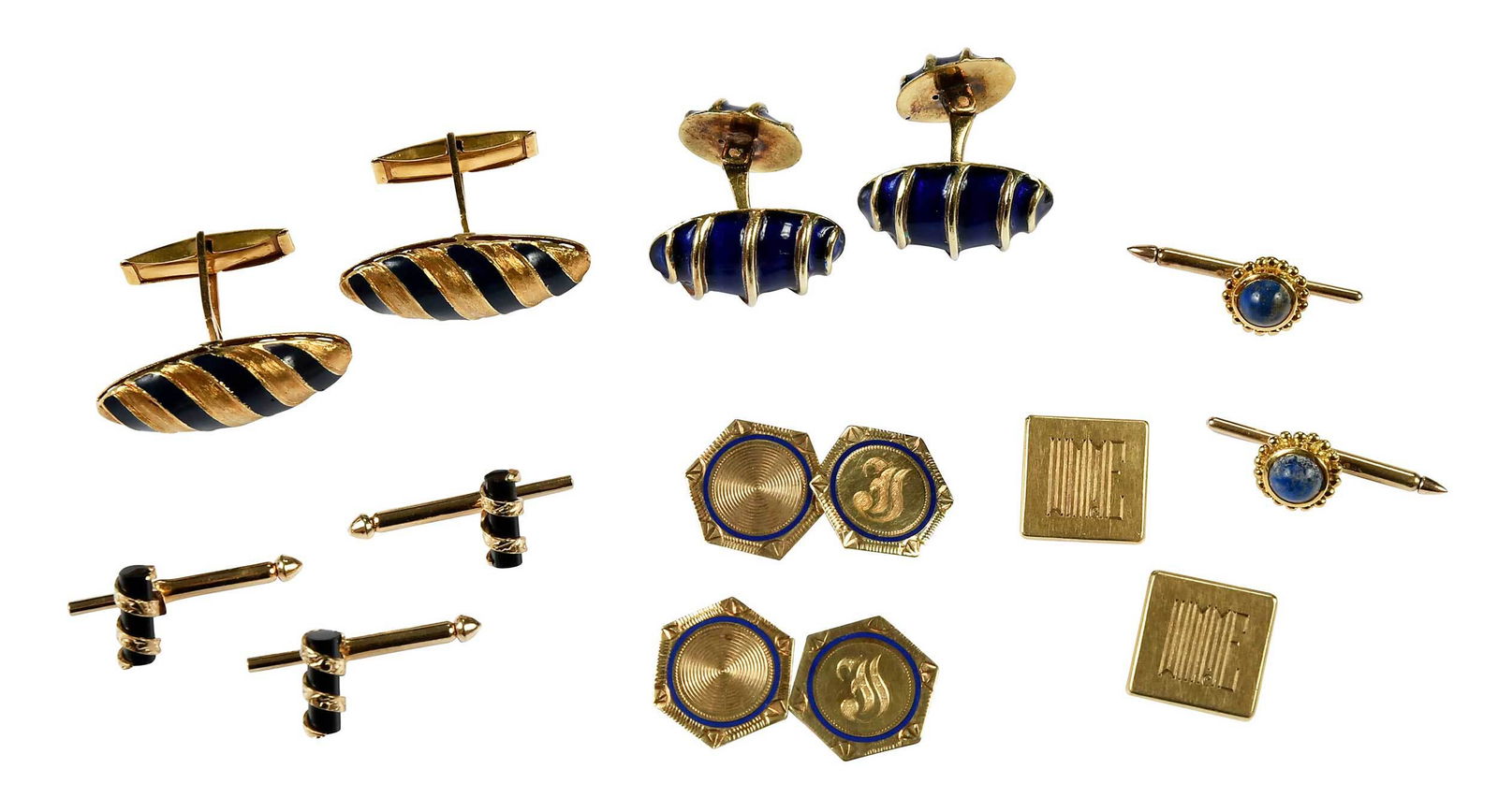 Elegant 18k Yellow Gold Mosaic Cufflinks with Cobalt Blue EnamelBidhaus4.2(847)$100(1 bid)23 hrs Left