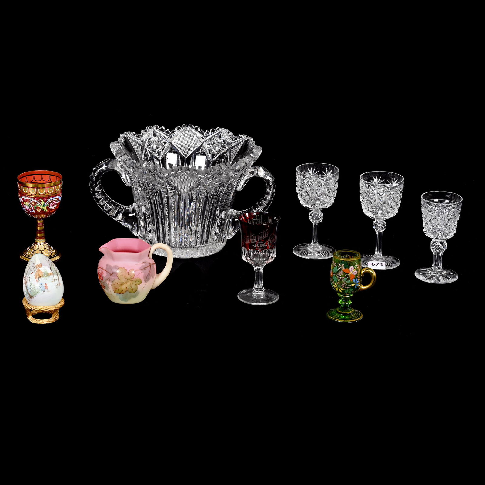 Lot of Glass PiecesFeb 12, 2026Estate lot interesting colored glasswares, to include candlesticks, pitchers, vases, (2) souvenirFeb 06, 2026ASSORTED OPALESCENT GLASS ARTICLES, LOT OF FIVE2 days LeftASSORTED OPALESCENT PRESSED GLASS ARTICLES, LOT OF SEVEN2 days LeftASSORTED VICTORIAN GLASS CABINET ARTICLES, LOT OF SEVEN2 days LeftASSORTED BLOWN AND PRESSED GLASS VASES, LOT OF FIVE2 days LeftASSORTED BLOWN AND PRESSED GLASS ARTICLES, LOT OF 152 days LeftPUKEBERG TURKEY TRACKS / ROYAL FAN DRINKING ARTICLES, LOT OF 132 days LeftA lot of 28 glasses and one decanter in Baccarat crystal, model MassenaFeb 24, 2026EARLY PRESS GLASS LOT6 days LeftWaterford Lismore Crystal Tableware Assortment15 hrs LeftBaccarat - Malmaison Stemware1 day LeftCRANBERRY GLASS ASSORTMENT: SHOT GLASSES, SHERBETS, GOBLETS, VASES2 days Left6 Assorted Crystal Glass Sippers Port Sherry Glassses AJul 17, 20254 Vintage Cordial And Flute GlassesFeb 10, 2026A Thirty Seven Piece Set of Moser Crystalware4 days Left