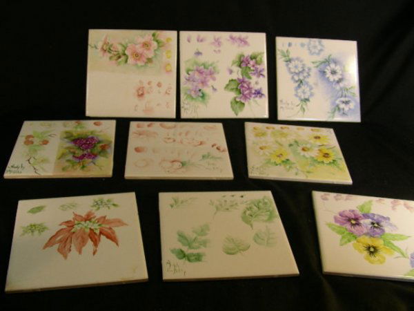 ASSORTED HAND PAINTED TILES TRIVETS 8 PCS