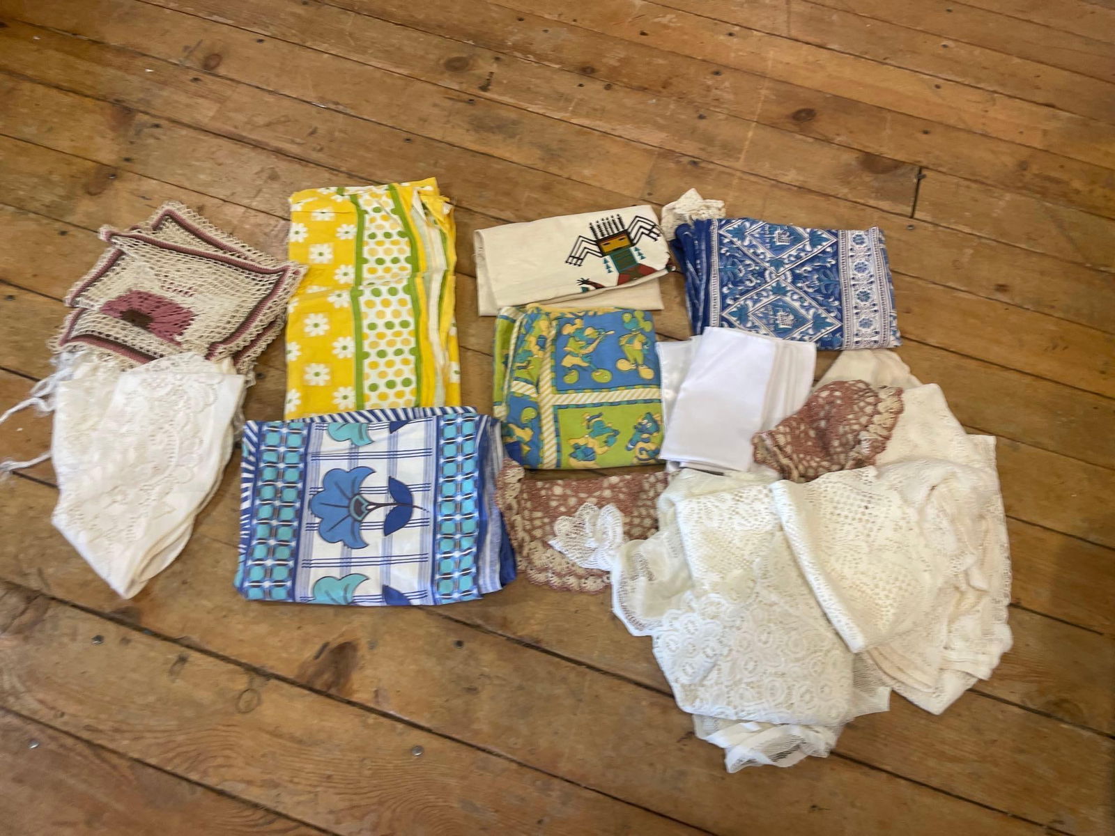 Lot Of Vintage LinensMar 16, 2026Lot Of Scarves, Including PashminaMar 16, 2026Lot 3 Vintage Embroidered Linen Table Napkins7 days LeftLot 5 Vintage Embroidered Napkins & Pillow Case7 days LeftLot 7 Vintage Linen Napkins & Table Runner7 days LeftVINTAGE EMBROIDERED TABLE LINEN SETS, LOT OF 37 PIECES17 hrs LeftLOT OF BAGS & FABRICMar 18, 2026Vintage lot of tablecloths, apron,Mar 13, 2026Lot of 6 vintage tableclothsMar 13, 2026Lot of 6 vintage tableclothsMar 13, 2026Lot of 6 vintage tableclothsMar 13, 2026Celine, Christian Dior, and YSL Collection of 15 Designer Handkerchiefs and ScarvesApr 01, 2026Assorted Doll & Baby Clothes, Shoes & AccessoriesAntique Doll and Baby Clothing- Assorted Size7 Quaker & Other Lace Tablecloths10 Lace Tablecloths