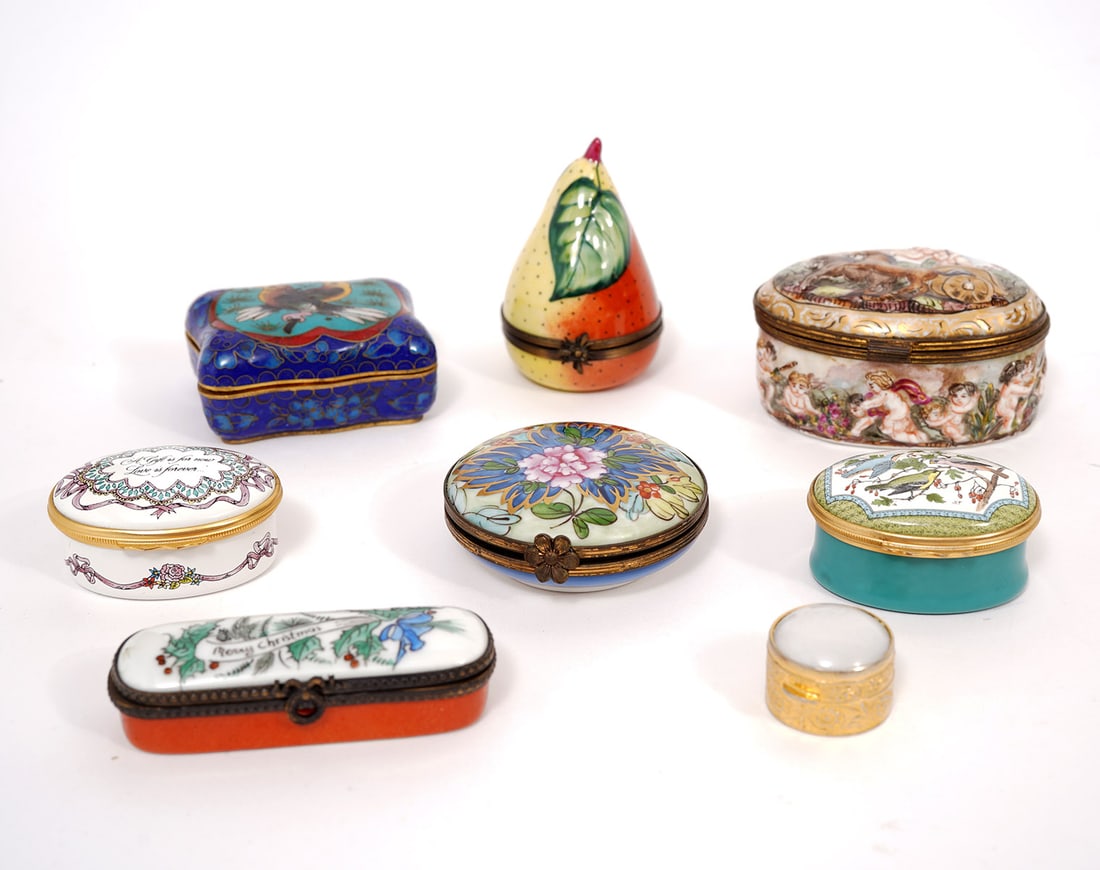 A Group of Fourteen Chinese Canton Enamel Articles 18th-19th Century2 days LeftA Group of Fourteen Chinese Canton Enamel Articles 18th-19th Century2 days Left(5) CONTINENTAL PORCELAIN TABLEWARE, ROYAL VIENNA & SEVRES STYLE5 days LeftLot of Hand Painted Porcelain Battersea & Dresser BoxesApr 06, 2026Cartier, Zenith & Russian Imperial Boxes 9pc LOT4 days LeftCninese & Russian Wood, Bone & Lacquer Boxes 6pcs4 days LeftNine Porcelain Limoges Trinket Boxes4 days LeftEight Limoges & One Capodimonte Trinket Boxes4 days LeftKPM and Limoges Cobalt Blue Porcelain Boxes, 10May 21, 2026Collection of Six Vanity Objects5 days LeftSeven Limoges Food & Floral Themed Trinket Boxes4 days LeftChinese Cloisonne Enamel Vases, Bowl, Boxes 6pcs4 days LeftCloisonne Enameled Lidded Boxes Teapot and Dishes (7)6 days LeftCinnabar Snuff Bottle, Covered Box, Agate Snuff Bottle, & Enamel TrayApr 06, 2026Collection of 6 Porcelain Trinket and Dresser Boxes – Limoges France, Kaiser Germany, Hungary7 days LeftPorcelain French Sevres Jewelry Casket and Trinket Boxes (8)6 days Left