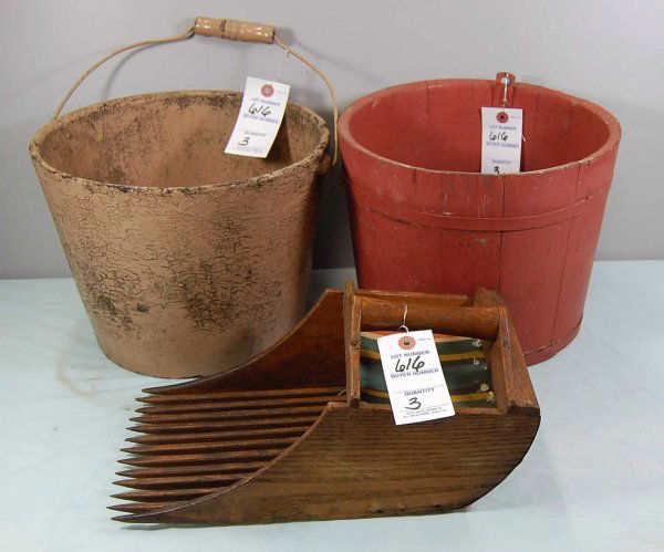 Assorted Lot Wood Pails Includes (2) Painted Pail