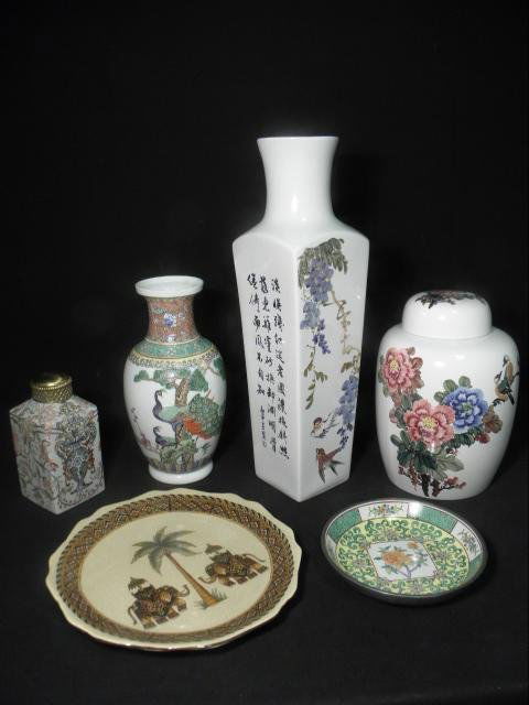 ASSORTED ORIENTAL CERAMIC & PORCELAIN WARE: 6 PCS