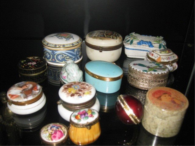 TRINKET BOXES MIXED LOT VINTAGE ANTIQUE6 days LeftLOT ANTIQUE BRONZE BOXES, VANITY ITEMS, ETC5 days LeftLot Wood, Porcelain, & Marble Dresser Boxes2 days LeftASSORTED ANTIQUE AND COLLECTIBLE ARTICLES, LOT OF TEN2 days LeftASSORTED LOT OF ADVERTISING TINSMar 14, 2026LOT OF 3 PORCELAIN PILL BOXES2 hrs LeftASSORTED LOT OF VARIOUS COIN PURSESMar 14, 202614 Porcelain, Wood, Musical, Glass & Inlaid BoxesMar 12, 2026Jay Strongwater Style Jeweled Trinket Boxes 4pcsMar 12, 2026Assortment Of Vintage Tea Cups, Saucers, Plates & Bowls2 days LeftANTIQUE ENAMEL / PORCELAIN BOXES, PATCH, SNUFF ETC5 days LeftCollection - 15 miniature boxes / pillboxes - including silver,Mar 13, 202610 Enameled BoxesMar 14, 20268 Enameled BoxesMar 14, 2026A group of European porcelain boxesMar 10, 2026Limoges Painted Porcelain Trinket Boxes, 13Mar 12, 2026