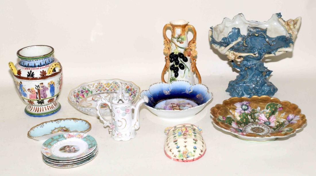 ASSORTED PORCELAIN SHELF LOT - Includes 3 vases,