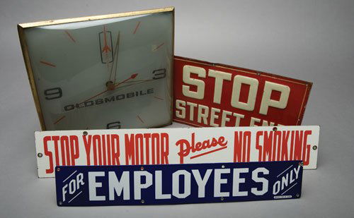Sign Lot4 days LeftA composed lot of six various mechanism clocks for reconstruction or parts7 days LeftLOT OF COMPASSES, BADGE, AUTO CLOCKFeb 26, 2026(4) Western Union Single-Sided Porcelain Sign & Call Box LotMar 14, 2026Two Vintage Timer Switch Clocks Telechron & General ElectricMar 02, 2026(3) Assorted Vintage Advertising ThermometersMar 14, 2026Two Signs Including a Prairie Farmer Protective Union No Trespassing Sign and a Colorado Plaque5 days Left(5) Porcelain Bathroom Informational SignsMar 14, 2026Pepsi Clocks and Marketing BinderMar 20, 2026(4) Shell Gasoline & Oil SSP Signs & Attendants HatMar 14, 2026Pooltemp Heated Pool Sign, No Alcoholic Beverages, and Fishing Supplies Vacuform SignsMar 20, 2026(3) S& H Green Stamps & Thrifty SSP SignsMar 14, 2026(2) Fire Alarm & Crown Panic Safety Door SignsMar 14, 2026(3) Atlantic/Standard Oil/Signal Oil Single-Sided Porcelain SignsMar 14, 2026Flats Fixed and New And Used Tires Vacuform Service Station SignsMar 20, 2026Gas Pump Pricer Sign and Goodyear ThermometerMar 21, 2026