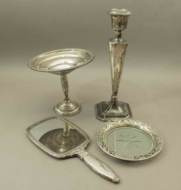 Lot of Assorted Sterling Silver Pieces, 60.79 Troy Ounces2 days LeftLot of Assorted Coin Silver Pieces, 29.89 Troy Ounces2 days Left(3) AMERICAN ROGERS & WALLACE WEIGHTED STERLING SILVER TABLEWAREMar 29, 2026Four Silver-Plate Table ArticlesThree Silver Plated Stemmed Goblets1 day LeftFour Antique Silver Pieces incl SterlingMar 20, 2026WEIGHTED STERLING SILVER3 days LeftEnglish Silver Serving PiecesMar 19, 2026THIRTEEN PEWTER ITEMS, INCL. TWO JAMES YATES (BIRMINGHAM, ENGLAND) MASTER SALTS.Mar 19, 2026Reed & Barton, Etc. Silver Plate Tableware, 10 Pcs4 hrs Left(7) American Sterling Silver Footed Bowl, Trays, & Vide-PochesMar 19, 2026Sterling Silver Tableware and ObjectsMar 21, 2026Reed & Barton Sterling Silver Tea & Coffee Svc, 5 Pieces - 110.2 ozt.Mar 19, 2026Gorham Plymouth Sterling Silver Coffee & Tea SetMar 19, 2026Silver Classical Ewer & Two ChargersMar 19, 2026Twelve American and English Silver Table Articles1 day Left