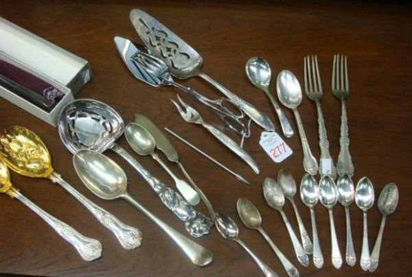 Lot of silver cutlery113 Lots AwayLot of Silverplate Serving PiecesFeb 12, 2026Estate lot STERLING SILVER including large fish knife, other serving utensils, souvenir spoons,Feb 06, 2026Estate lot STERLING SILVER, older flatware, childs utensils, tea strainer and serving largeFeb 06, 2026Assorted Lot of Austro-Hungarian .800 Silver Flatware and Serving PiecesFeb 06, 2026Estate GORHAM & REED & BARTON Sterling Silver flatware ( very fancy similar patterns ), lot toFeb 06, 2026Silver Flatware, Spoons and More, Group of 181 day Left7 Vintage Silver Plated Forks & Serving Ladle & SpoonFeb 04, 2026Assorted Danish .800 Silver FlatwareFeb 08, 202660 Pc. Sterling Silver Flatware Service Damask Rose by Heirloom Sterling7 days LeftAssorted Sterling Flatware, SaltsFeb 08, 2026Assorted Silverplate Flatware and Hollowware, Victorian and Early 20th Century1 day LeftGroup of Sterling Silver FlatwareFeb 04, 2026Gorham "Chantilly" Sterling Silver Flatware - Set of 25Jul 22, 2025Gorham "Chantilly" Sterling Silver Flatware - Set of 25Jul 29, 2025Gorham "Chantilly" Sterling Silver Flatware - Set of 25Jul 28, 2025