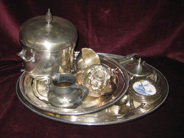 ASSORTED SILVER PLATED ARTICLES, TRAYS, ETC.