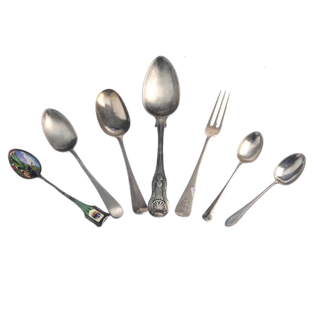 Assorted silver spoons and a silver fork. To include, a