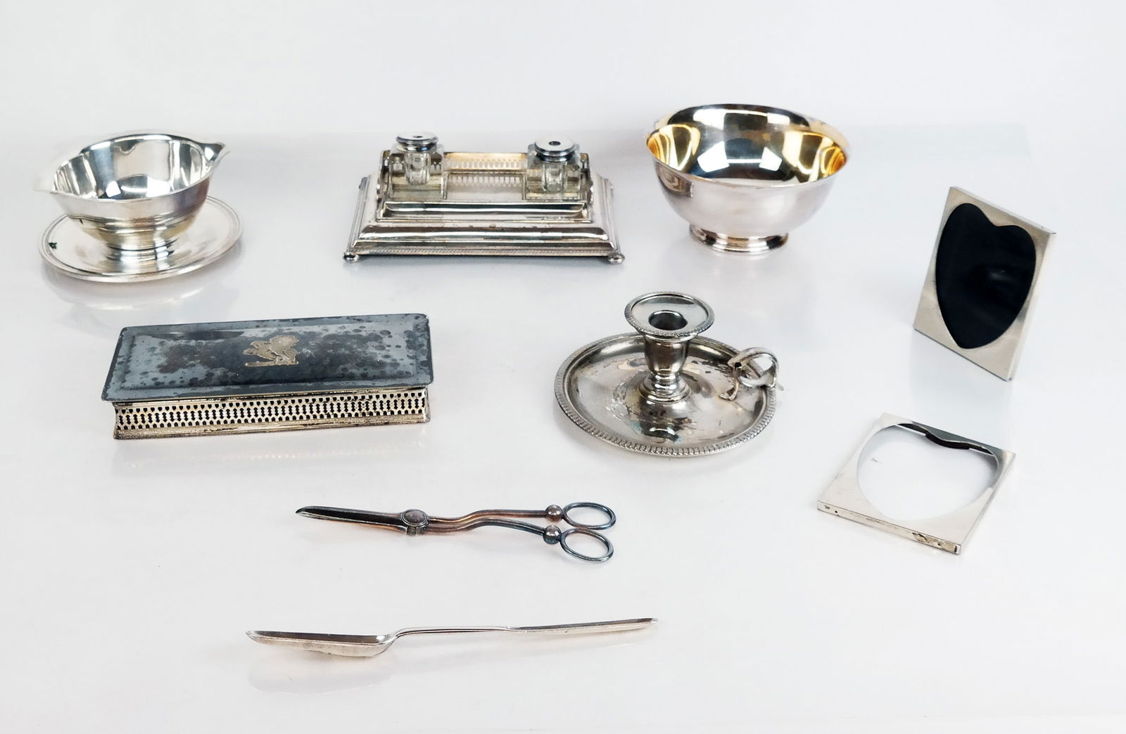 LOT ASSORTED STERLING JEWELRY FINDINGS, W. 6.1 OZ.Feb 21, 2026LOT OF SILVER AND SILVERPLATE, 8" AND SMALLERFeb 08, 2026Group Lot of Silverplate ItemsFeb 12, 2026Lot of silver cutlery113 Lots AwayLot of Sterling Silver Rimmed and Topped ItemsFeb 12, 2026English Sterling Dish Bowl Servers Knife Rest LOTFeb 11, 2026Assorted Lot of English Sterling Silver Flatware and UtensilsFeb 06, 2026ODD LOT OF MOSTLY PEWTER 19th Century Heights from 2.25" to 10.5".2 days LeftEstate lot silverplate etc. to include sterling rim serving plate, (4) cut glass & sterling rimFeb 06, 2026Silverplate Flatware, Tableware and Accessories16 hrs LeftSilver Tableware and Serviceware Group16 hrs LeftSmall Silver Serving Dishes, Group of 1416 hrs LeftSilver Table Accessories, Group of 716 hrs LeftSilver Serviceware and Serving Pieces16 hrs LeftSilver Flatware, Spoons and More, Group of 1816 hrs LeftGroup of Antique Sterling Silver Articles, 20 ozt - Ten item of mostly American sterling silver.478 Lots Away