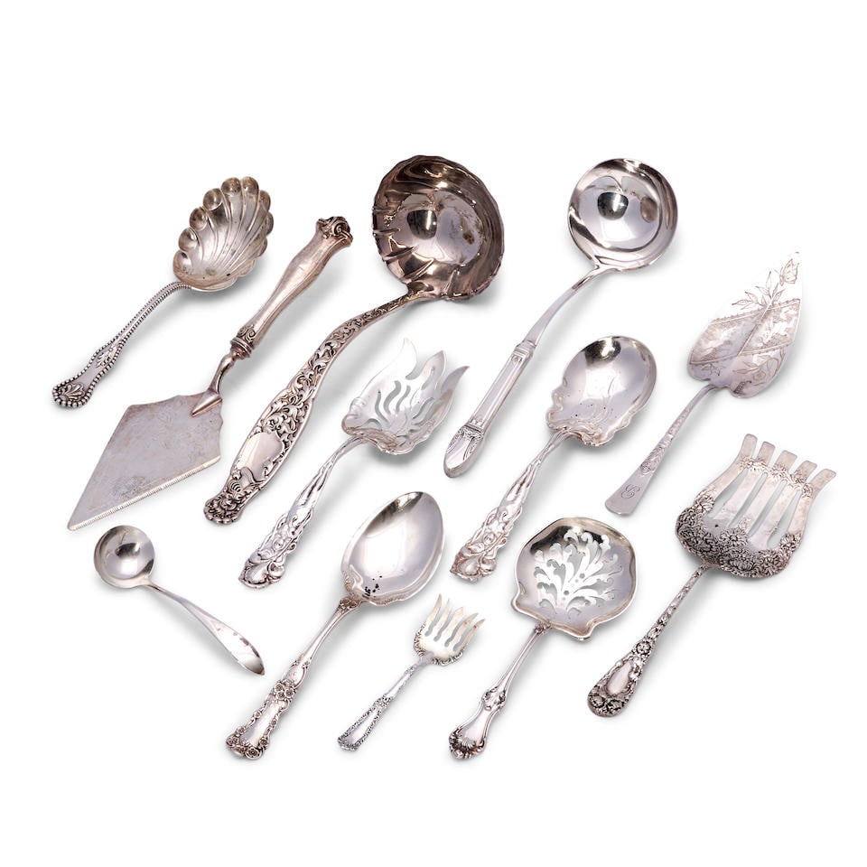 ASSORTED STERLING SILVER & SILVER-PLATED SERVING UTENSILS