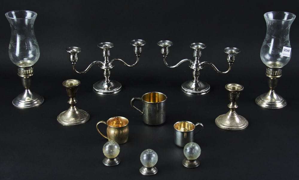 Lot weighted sterling candle holders, 3 pairs & one single candelabra4 days LeftSterling Silver and Silverplate Lot2 days LeftLot of Weighted Sterling Silver CandlesticksMar 14, 20264PC LOT WEIGHTED STERLING SILVER2 days LeftLARGE LOT ASSORTED BRASSWARE, CANDLESTICKS, ETC.2 days LeftA MIXED LOT OF TABLE WARELot of Assorted Sterling Silver Pieces, 60.79 Troy OuncesMar 14, 2026STERLING SILVER lot to include pair weighted bottom candlesticks, (2) weighted bottom bud vases &Apr 10, 2026Estate lot misc. STERLING SILVER including one pair weighted bottom candlesticks, and misc.Apr 10, 2026Lot of Sterling Silver, 3 Sterling Silver Weighted Bud Vases, 2 Sterling Silver Weighted Compotes5 days LeftCollection of Weighted Silver CandlesticksMar 14, 2026Brass Candlesticks, bowls, goblet & moreEIGHT ASSORTED SILVER AND SILVER PLATED CANDLESTICKS 19th/20th CenturyMar 25, 2026COLLECTION OF SILVERPLATE17 hrs LeftSterling Silver Basket + 2 Pairs Candlesticks3 days LeftSterling Silver Candelabra + Candlestick Pair3 days Left