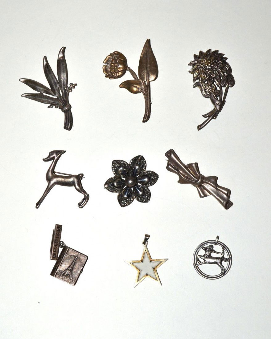 Assorted Sterling Silver Pins & Charms