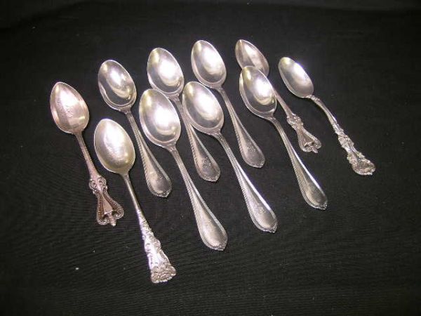 ASSORTED STERLING SILVER TEASPOONS 10 PCS
