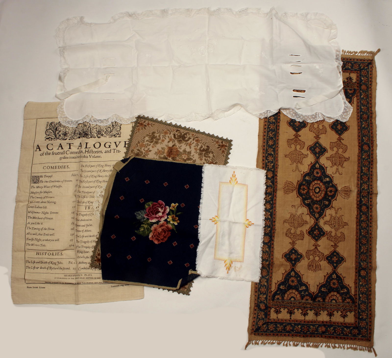 ASSORTED VINTAGE NEEDLEWORK AND LINENS