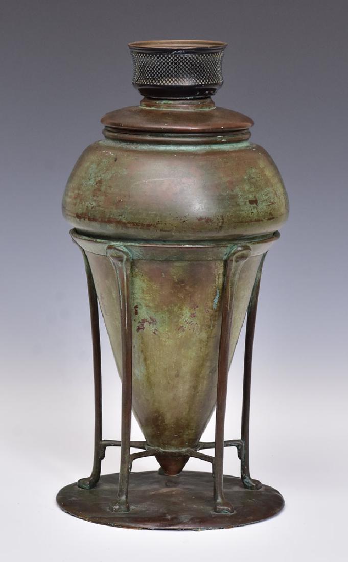 SoldTiffany Studios Bronze Oil Lamp BaseTiffany Studios Bronze Oil Lamp Base. 3 arm shade rest for a 16" dia. shade with original oil font, Plume & Atwood "Duplex" burner in original condition and signed under the font canister "Tiffany StuSee Sold Price