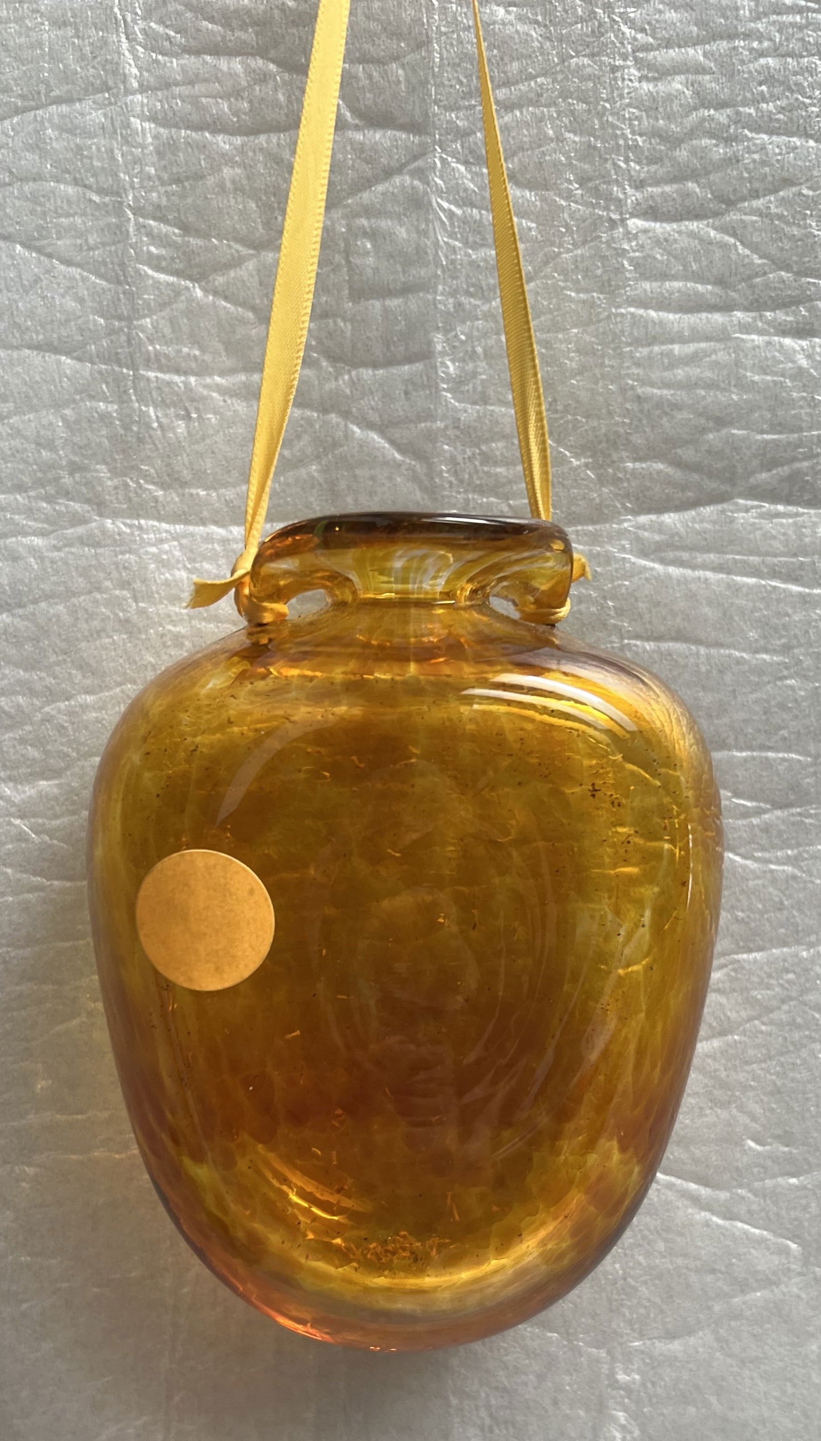 August Huster Dated 1997 Hanging Amber Hand Blown Vase