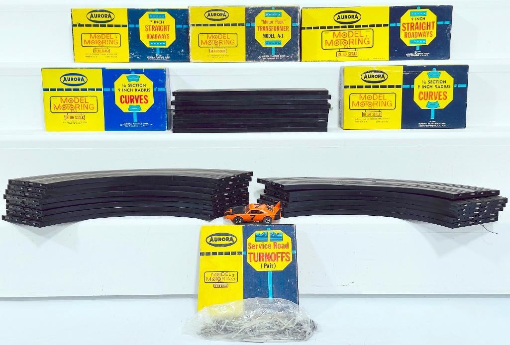Aurora Postwar HO Scale Model Motoring Track/Transformer/Turnoffs