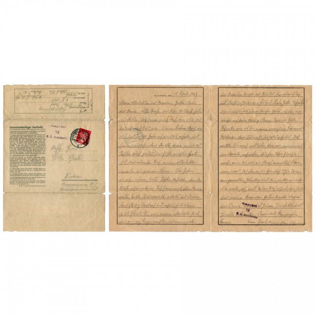 SoldBuchenwald Concentration Camp Prisioner Letter 1942Buchenwald Concentration Camp Prisioner Letter 1942.See Sold Price