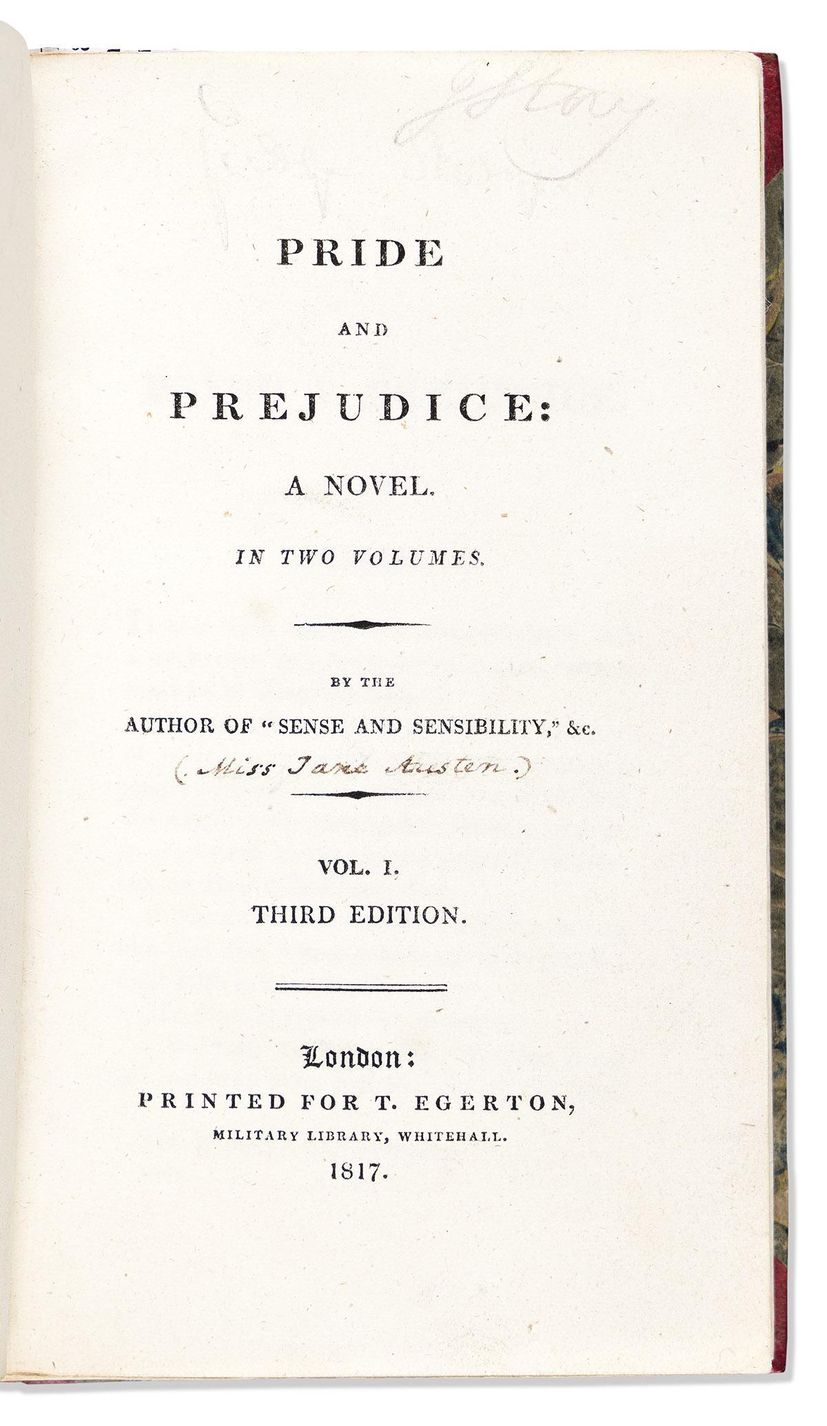 AUSTEN (JANE) Pride and Prejudice: A Novel... By the Author of 'Sense and Sensibility.', vol. 2 ...Bonhams4(383)£1,500